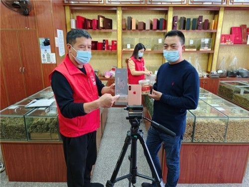 基于此,该局“香溢”志愿者主动带好直播器材来到卢国文的店中,帮助其直播销售药材。