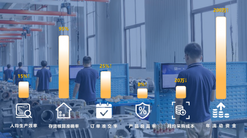 相较于传统软件项目定制交付的特征,蒲惠走出了一条数字化改造批量全覆盖模式。提供数字化产品之余,软件后期运维、更新迭代在内的一揽子全周期服务均由蒲惠负责,有效消除了中小企业群体长期使用工业软件的顾虑,成功构建了以产品为载体、以服务为核心的数字服务新生态。近年来,蒲惠在浙江多地部署完成了数百家中小企业数字化改造全覆盖工程,帮助特色产业集群迈向高质量发展。以机械配件行业为例,数字化转型完成后,企业整体的月均采购成本下降20万元,人均生产效率提升15%,产品良率提升8%,订单准交率由70%提升至95%,存货核算准确率提升至95%以上,年流动资金可增加200万元。