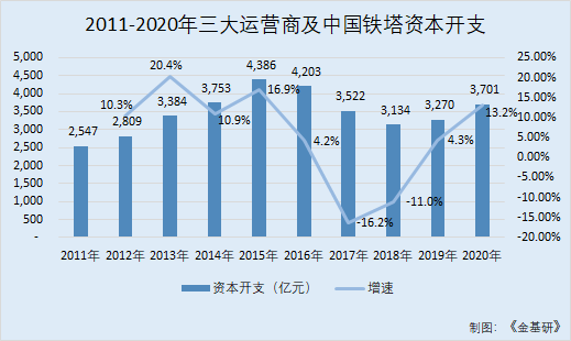 2019年作为5G商用元年,工业和信息化部于2019年6月6日正式向三大运营商及中国广电颁发5G商用牌照,三大运营商及中国铁塔资本开支达3,270亿元,较上年同比增长4.3%。2020年,三大运营商及中国铁塔资本开支达3,701亿元,较上年同比增长13.2%。