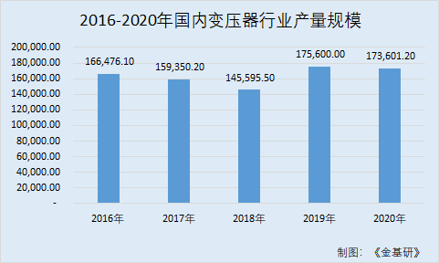 2019年,国内变压器总产量规模有所回升,整体规模达到175,600万千安伏,同比增长20.6%。2020年,受疫情影响,国内变压器总产量规模略微下降,降至173,601.2万千安伏,但较之前年份有所回升。