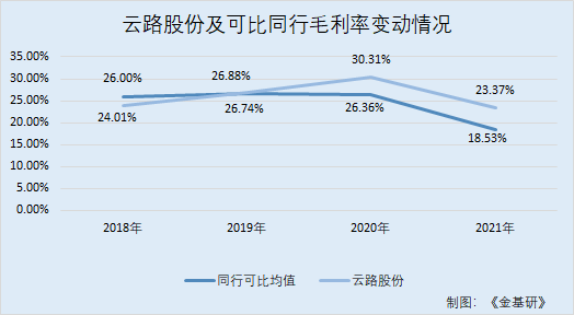 据东方财富Choice数据,2018年-2021年,云路股份的毛利率分别为24.01%、26.88%、30.31%、23.37%。