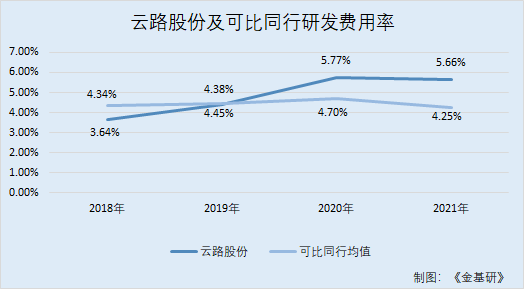 由上述可见,云路股份研发费用率呈上升趋势且高于可比同行均值。
