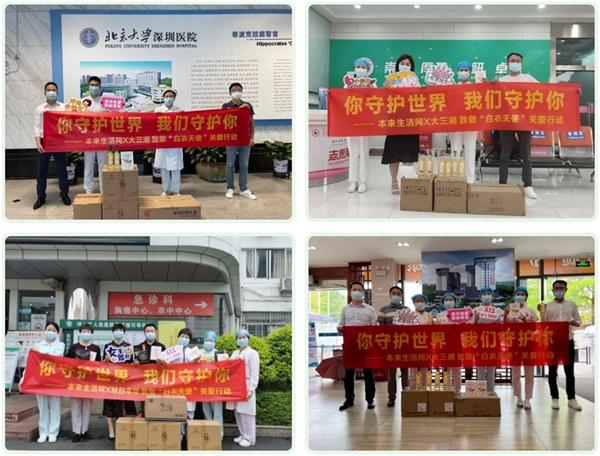 ▲本来生活网携合作伙伴向深圳医护工作者赠送爱心物资