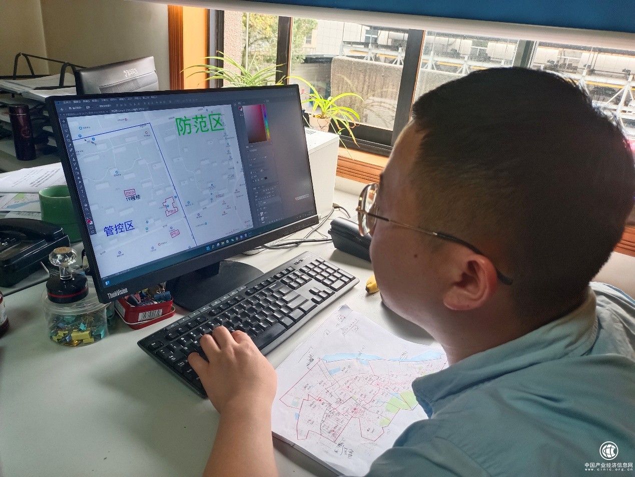 图为业务部门有关负责人在认真编制疫情期间送货线路图。