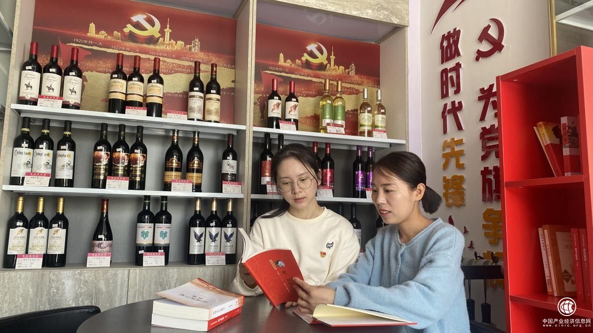(图为:镇海烟草党员倪佳燕和党员零售户陈秧秧在读书角共读红色书籍)