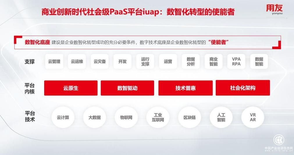 用友iuap平台作为企业数智化转型的创新驱动力,基于产业和社会化的视角,构建产业互联网的社会级PaaS平台,不断进行技术升级,实现了四大技术突破、社会化架构突破、数字应用突破、数智应用突破,帮助企业将技术、业务、决策深度融合,实现企业的提质增效。