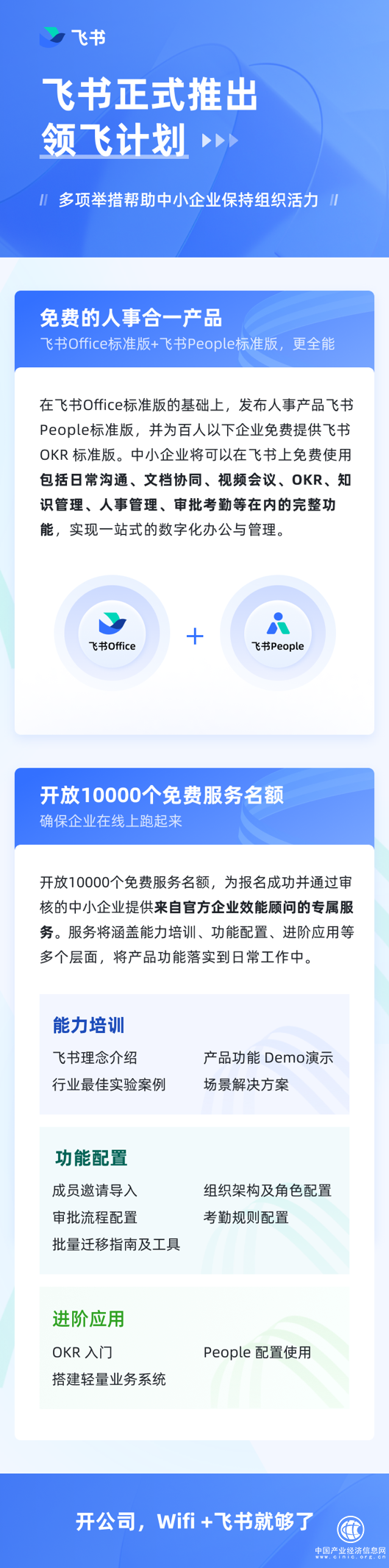 “无论是创业,还是扩展业务版图,开公司,Wifi 加飞书就够了。”林婵表示,“更全能的标准版产品加上官方的手把手服务,这样的全面解决方案能够让企业快速适应变化。对企业来说,飞书是一个功能完备的线上办公室,帮助企业始终保持组织活力。”
