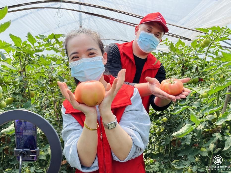 “大家来尝尝呀,这些番茄红润饱满,口感鲜甜多汁,生吃、做菜都是这个时节最好的选择!”志愿者大口咬着番茄,用亲身感受向镜头前的消费者介绍。