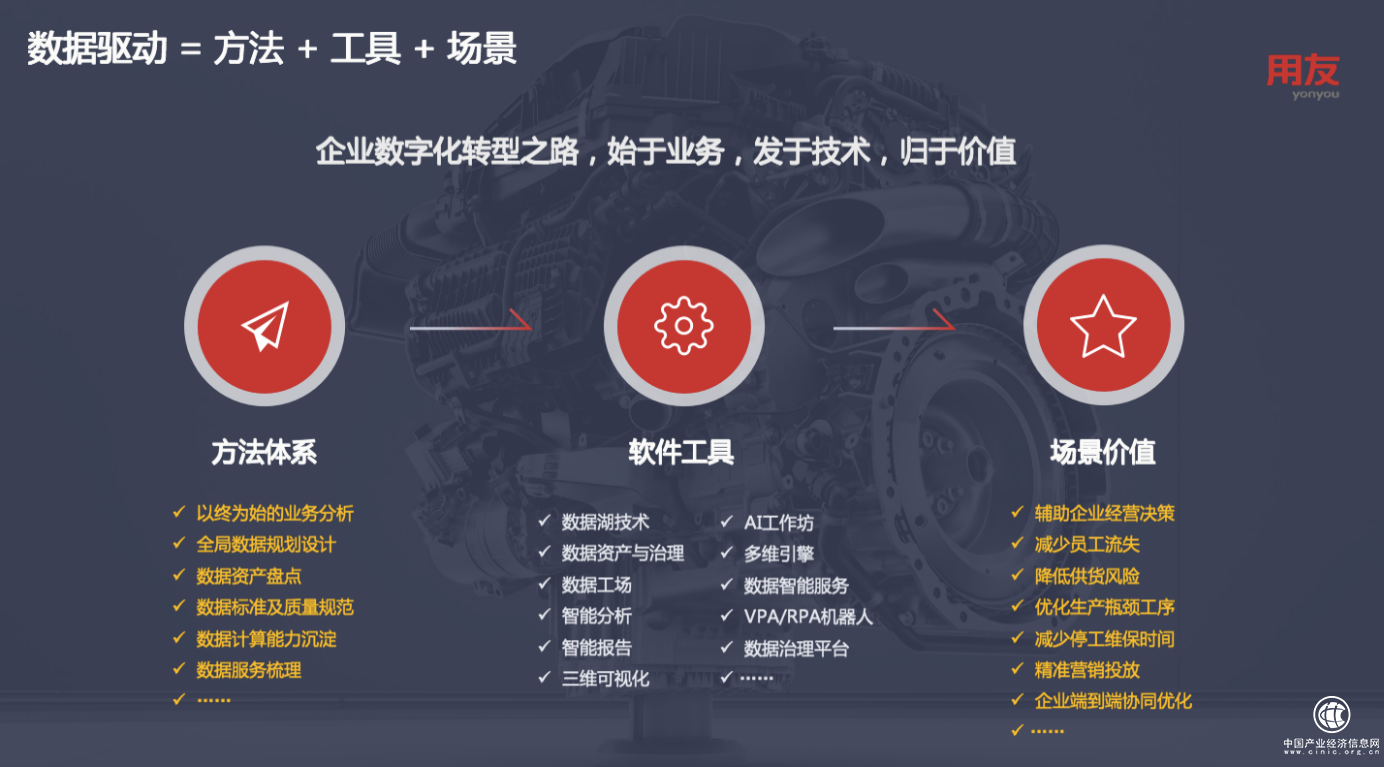 智慧产业链的形成既需要数据中台的支撑,又依赖于企业的数据资产和数据应用。数据智能技术正在驱动企业的业务增长,成为企业增长的新引擎,帮助企业实现数智化转型。
