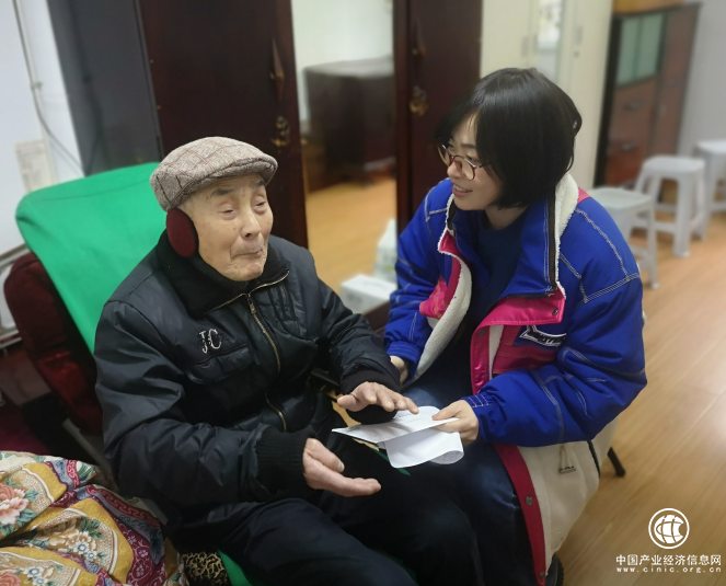 图为黄丽为老同志送上定制的“爱心联系卡”