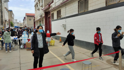 “请大家带好身份证,自觉保持2米距离,从两边绕行,做完核酸请及时离开现场,不要逗留!”
