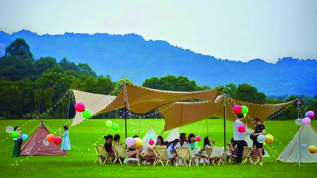 回望五一,成都区域内围绕城市微度假掀起了一波热潮,亲子露营、乡村休闲、乡村采摘、乡村民宿等新式出游方式广受年轻人和亲子家庭的青睐。在“双碳”“两山”理论下,绿色消费正成为品质生活的“新范”,成都以新发展理念为“魂”,以公园城市为“形”,促使农商旅融合发展模式渐行渐优,正形成一股乡村振兴的新活力。