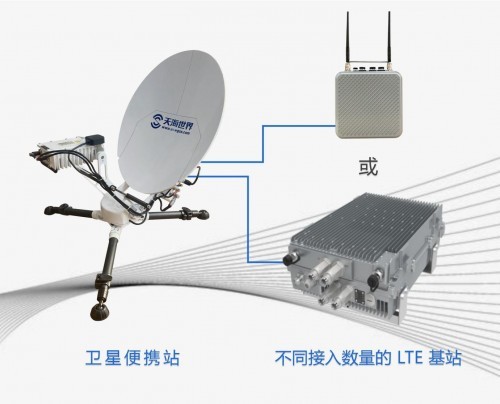 分体式卫星移动基站,卫星天线传输系统负责卫星网络接入,LTE基站负责及移动信号盲区的覆盖。根据应用场景需求,卫星天线部分可配置便携站、固定站、车载动中通、船载动中通等多种形式。天海世界与国内多个卫星系统运营资源方保持深度稳定合作,采用高通量Ku/Ka卫星资源,使系统所需高速率卫星宽带网络拥有可靠保障。LTE基站部分根据用户接入数量需求配置不同容量的移动基站。
