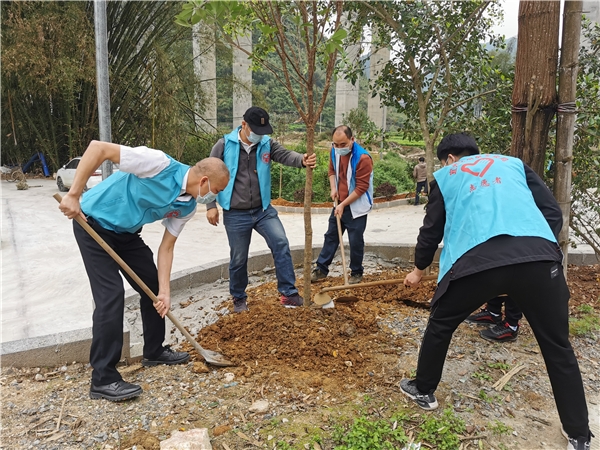 图为:宜州烟草与小隘村联合开展义务植树志愿服务活动。(梁枫 摄)