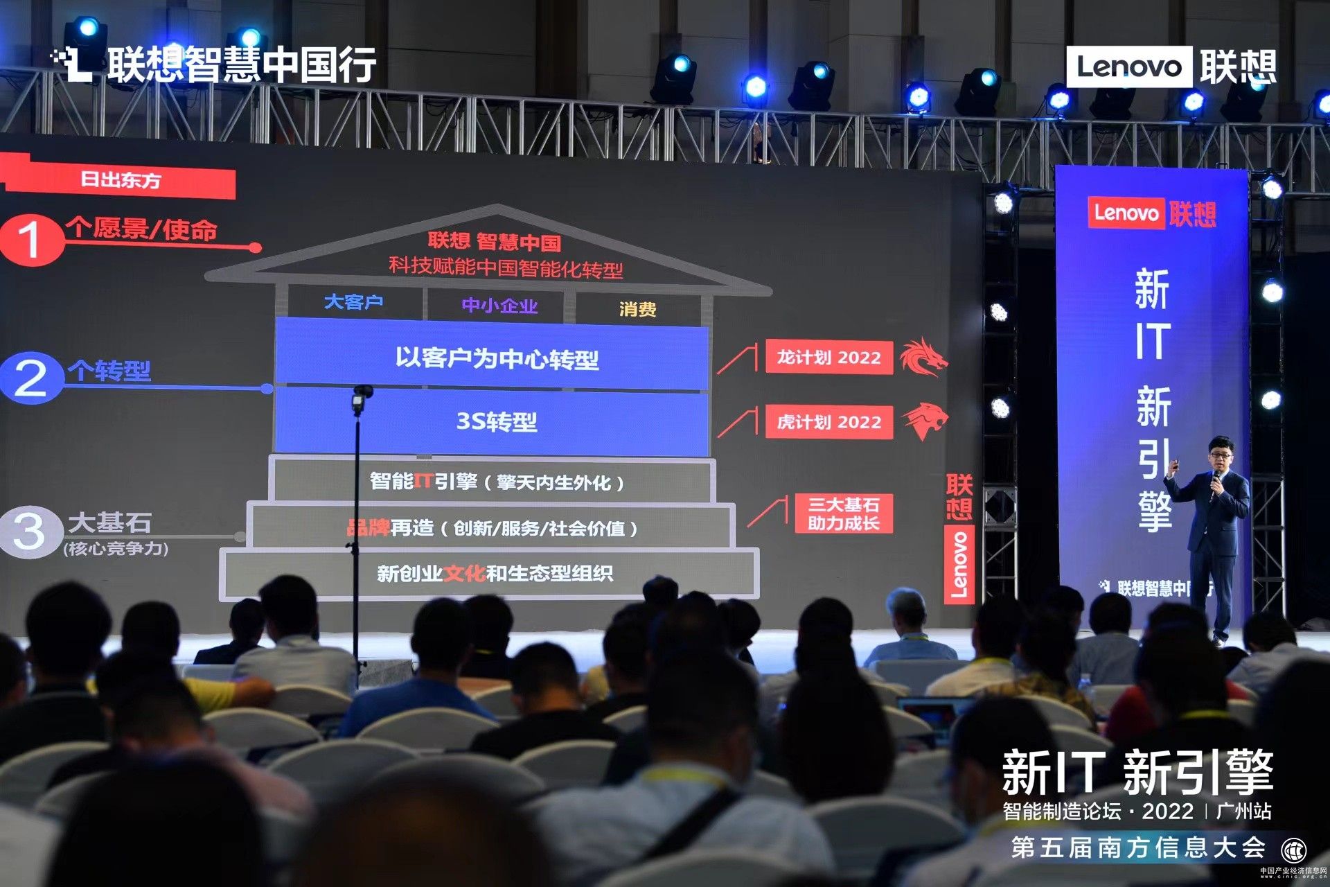 5月28日,2022南方信息大会在广州举行,多位华南制造业知名公司高管和数百位IT负责人亲临会场,在线上线下一起探讨企业智造的数字化创新发展大计。联想积极参与本次大会,与众多CIO共聚一堂,同时举办了联想智慧中国行广州站活动,并在会上展示了在智能制造方面的最新成果。应大会邀请,联想中国副总裁、华南大区总经理袁帅青在会上做了专题演讲。