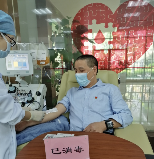图为:董忠岳积极参与无偿献血活动
