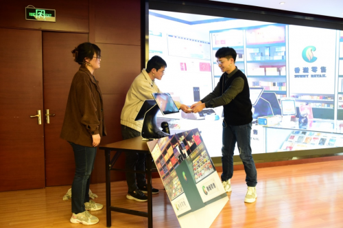图为:青年员工在湖州烟草数创科技节上进行项目路演
