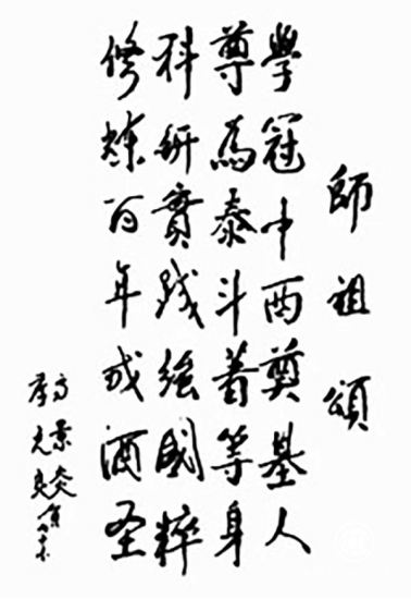 “学冠中西奠基人,尊为泰斗著等身。科研实践强国粹,修炼百年成酒圣。”这是二锅头酒第八代非遗传承人高景炎先生和原茅台集团董事长季克良先生在恩师秦含章先生109岁生日贺寿时亲笔题的一首诗,这首《师祖颂》不仅生动刻画了“酒界泰斗”秦含章先生的经历、成就和荣誉,更饱含了高景炎先生和季克良先生对恩师秦含章先生的崇敬之情,以及对其谆谆教诲的感恩之情。