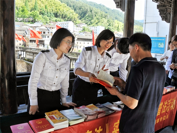 同时,遂昌县烟草专卖局“香溢”志愿者普法小分队走进红色古镇王村口设立宣传服务点,为来往群众讲解真假烟辨识小妙招,并通过“小明的一生”漫画宣传册,深入浅出地讲解了《宪法》《民法典》与每一位公民的密切关系,拉近了法律与普通群众的距离,帮助群众更好地理解法律法规,把免费“法治大餐”送到群众家门口,与群众一起体验别样的“法治风情”。
