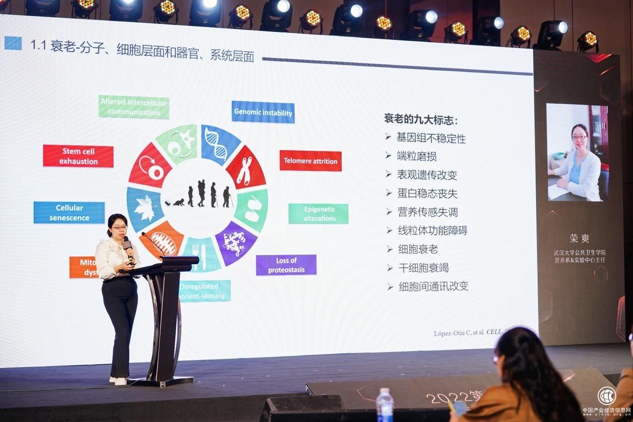 会上邀请了武汉大学公共卫生学院营养系主任荣爽教授,对抗衰老的科学发展趋势进行了报告,系统讲述了衰老维度及评价、抗衰途径等内容。她表示,目前主要的抗衰途径包括:运动、饮食、睡眠等生活方式的改善,NAD+增强剂等抗衰药物的干预以及干细胞疗法等其他途径。