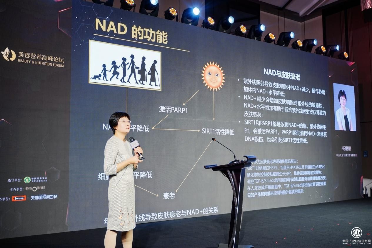 “紫外线照射导致皮肤细胞中NAD+减少,随年龄增加体内NAD+水平也会降低。而NAD+在线粒体中作为辅酶的功能,在细胞代谢过程中起着特别积极的作用。根据研究,口服NR补充剂有效提高外周血单核细胞中的NAD+水平达60%。因此,NR或其他NAD前体或配方作为补充剂在抗衰老中的应用将成为未来的应用趋势。”中山大学公共卫生学院杨丽丽教授也带来了“Nad与健康”的研究分享,并且在现场深度剖析Nad+的临床价值和作用机制。