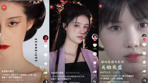 海俪恩从去年 10 月起,就与金角大魔王、动词大茗音、元气七七等国风圈创作人 合作,通过古今变装对比,呈现出与“诗经”、“唐潮”系列产品理念相符的古装形象。海俪恩以国风创作人为媒介,触达到了更多热爱国风文化的用户。