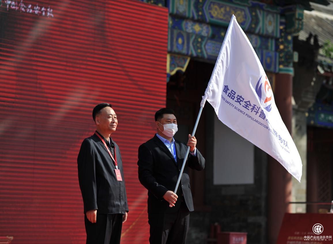 天津市科学技术协会党组书记、常务副主席陆为民为食品安全科普志愿服务队授旗
