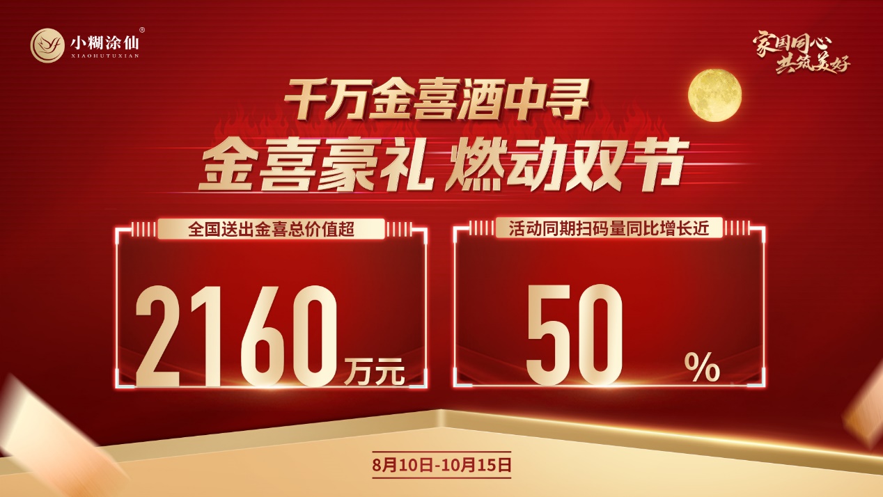 欢庆时刻,金喜加倍。小糊涂仙围绕“家国同心 共筑美好”活动主轴,以千万金喜福利开启了全民开盖扫码抽奖活动,强势霸屏全国105个高铁站,覆盖超3亿人群。活动以49999元购车基金、19999元美好生活消费基金、2g黄金等重磅金喜燃动广大国民的消费热情,开盖扫码率同比增长近50%,活动累计送出总价值超2160万元的奖品,品牌收获了一大波好评。