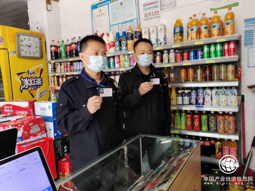 图为:赵锦浩(左)与同事正在开展市场检查工作现场