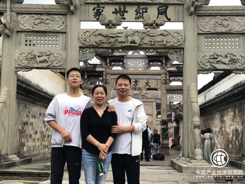 图为:赵锦浩一家在东阳市卢宅古建筑群前合影(赵锦浩 供图)