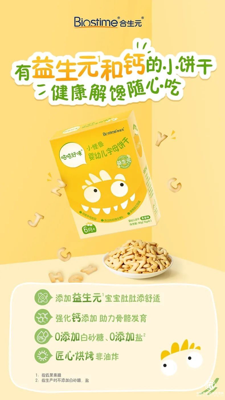 合生元作为专注母婴健康的全球领先品牌,此次合生元咕咕好味婴童系列零食的亮相,深度洞察新消费市场需求,首先切入大品类饼干和溶豆赛道,覆盖多年龄段需求,创新打造多款婴童肠道健康零食。