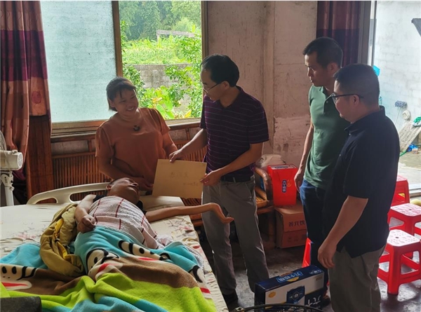 图为:环江烟草领导班子为罗覃宝送上中秋节慰问礼品(唐春 摄)