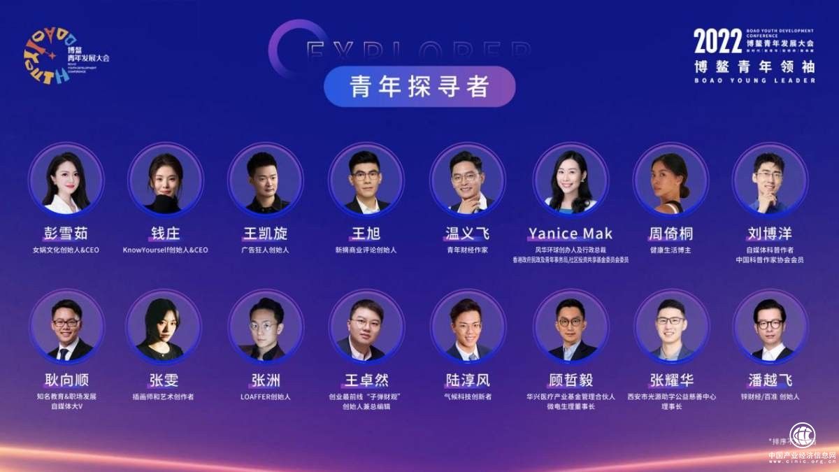 据了解,此次“2022博鳌青年领袖”名单是由博鳌青年发展大会组委会正式发布,以“青年启迪者”“青年实干者”“青年探寻者”“青年创造者”“青年梦想者”五个维度,选择世界范围内不同领域的青年先锋人物。“名单的发布旨在展现当代青年的探索与实践,打造青年领袖与各界资源的连接桥梁,助力青年在各领域实践及成果的落地与转化,并为优秀青年间搭建起跨界交流的平台。”博鳌青年发展大会相关负责人介绍,大会将以名单发布的契机促进各方合作和平台拓展,发掘更多优秀青年榜样,同时为大会注入源源不断新鲜的生命力。