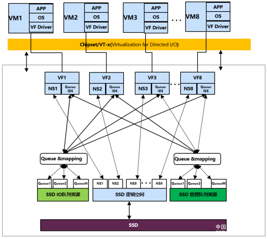 3、各 VF 之间的 IO 业务性能相互隔离,不因某一个 VF 的性能变化而导致其他 VF 性能的波动。