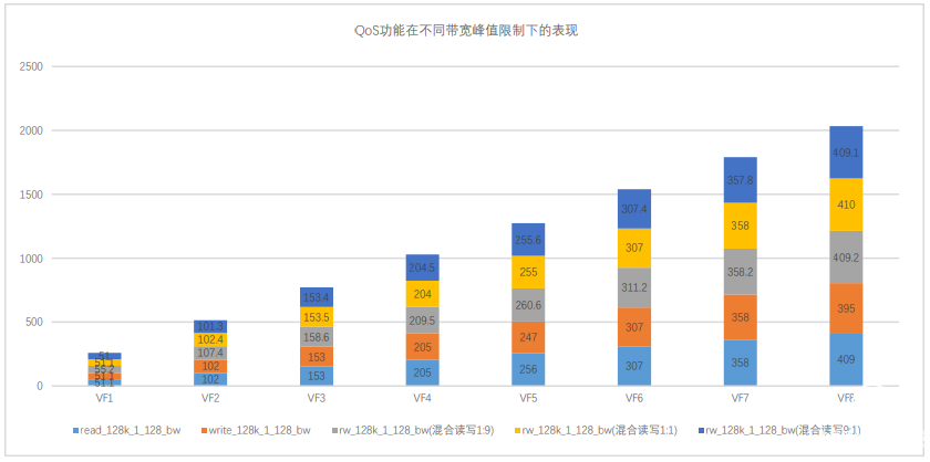 1、SSD 可通过对读、写及混合读写的带宽、IOPS 性能的调控,达到对特定 VF 业务进行多维度控制;
