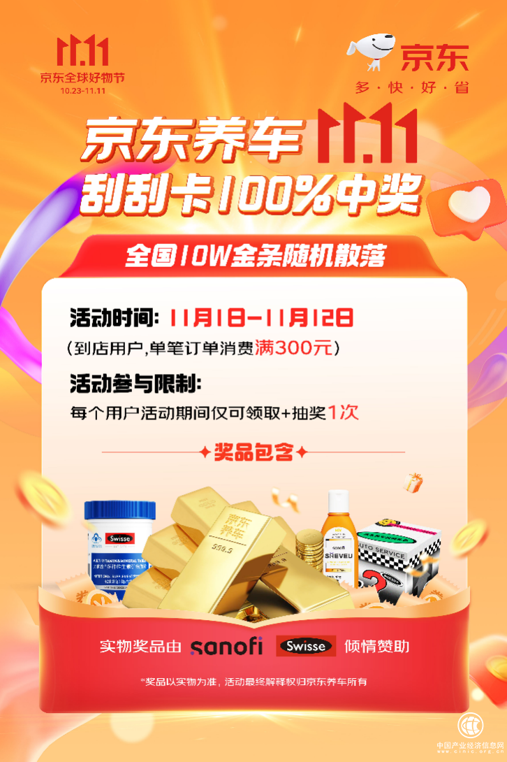 10月31日晚8点,京东11.11补贴加码。而从11月1日开始,京东养车“震虎价”在全国门店也将持续升级,在产品方面实行全渠道同促同价,低至5折,推出“买1送1礼”、“限时秒杀”等多重活动,还为消费者带来“门店双11放心检”的服务,让到店消费者拥有“品牌真低价,服务不打折”的消费体验。值得一提的是,参与“买1送1礼”活动还有机会获得金条,用户来京东App搜索“养车抽金条”即可直达活动会场。