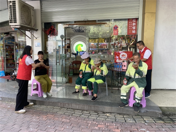 “这几天虽然是秋天了,但是天气还是太热,我们平常还在这里可以歇歇脚、上厕所、乘乘凉,还有免费的水可以喝,真的很贴心!”在零售终端的红色驿站里,环卫工人一边喝水,一边感慨地说。