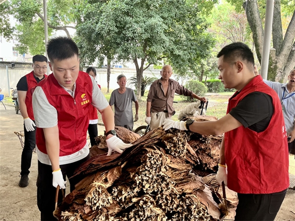 一大早,香溢志愿者来到了烟叶收购现场,与烟农们一起劳动。“大家当心一些,我们搬烟叶过来了,大家让一让”清晨凉爽,但志愿者脸颊上却早已浸出了汗水,仓库内外到处呈现出一片紧张忙碌的沸腾景象,一抹抹烟叶金与志愿红交相辉映,形成了一道靓丽而独特的风景线。