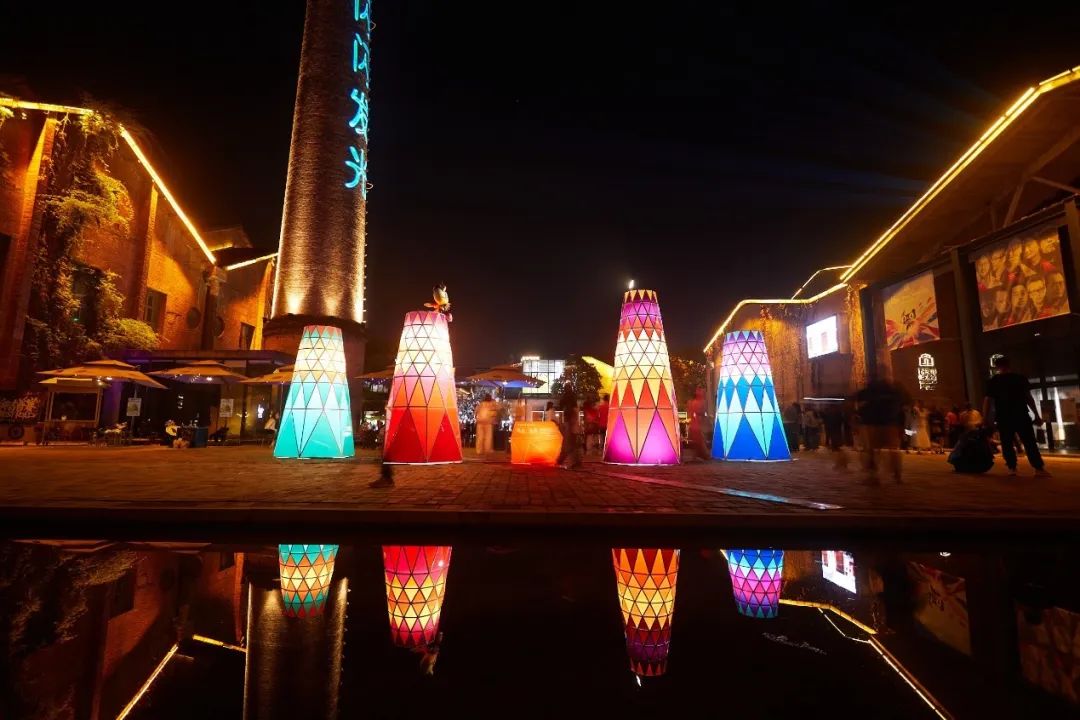 都说双11是一个令人惊喜的日子,在陶溪川的“明日之窑”组成“11.11”的形状,代表着天猫双11为生活带来的万千惊喜。它的设计灵感,来源于陶溪川的烟囱,代表了从历史深处走来的景德镇;五光十色的外观,也象征着景德镇多种多样的陶瓷。当夜晚灯光亮起,炫彩的光芒之中,是对过去与未来的无限联结与遐想。