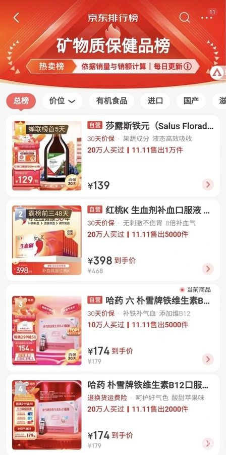 而哈药朴雪牌铁维生素B12口服液专为缺铁女性打造,补铁养血,由内而外呵护好气色,荣登矿物质保健品榜TOP3,年度累计GMV1亿+。