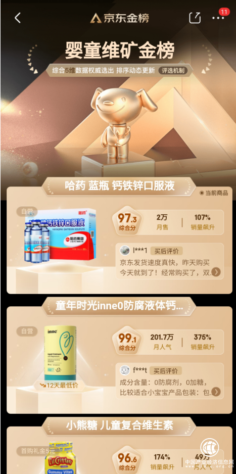 其中哈药牌钙铁锌口服液专为1岁以上儿童打造,钙铁锌3样同补,儿童营养铁三角,全面守护儿童骨骼、体质、食欲,在“11.11”中斩获京东婴童维矿金榜和天猫液体钙热销榜两项TOP1,年度累计GMV5.3亿+。