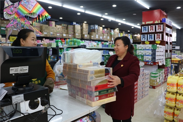 (优秀共产党员郭金香(右)热情地为零售户送货)