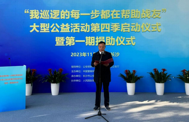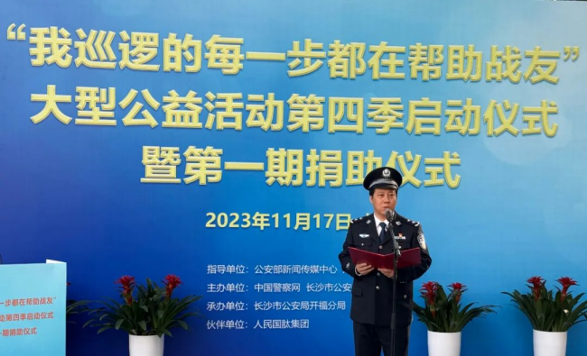 警企联动,步步为爱,益起行善,公益永远在路上。2023年11月17日,由公安部新闻传媒中心中国警察网联合人民国肽集团共同发起的“我巡逻的每一步都在帮助战友”大型公益活动第四季暨第一期捐助仪式在湖南长沙正式启动!