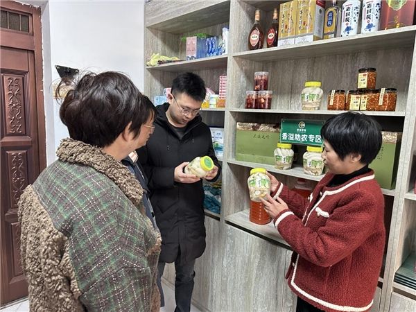 不仅如此,胡金香还在店铺开辟了农产品售卖专区,无偿帮助村民销售农产品。原来,洋港村家家户户都种有花生、辣椒、猕猴桃等农产品,往往需要村民拉到集市销售。这种销售模式不仅增加了村民经营成本,耗费大量精力,而且效益也并不高。作为土生土长的本村人,胡金香想着为村民做点什么。