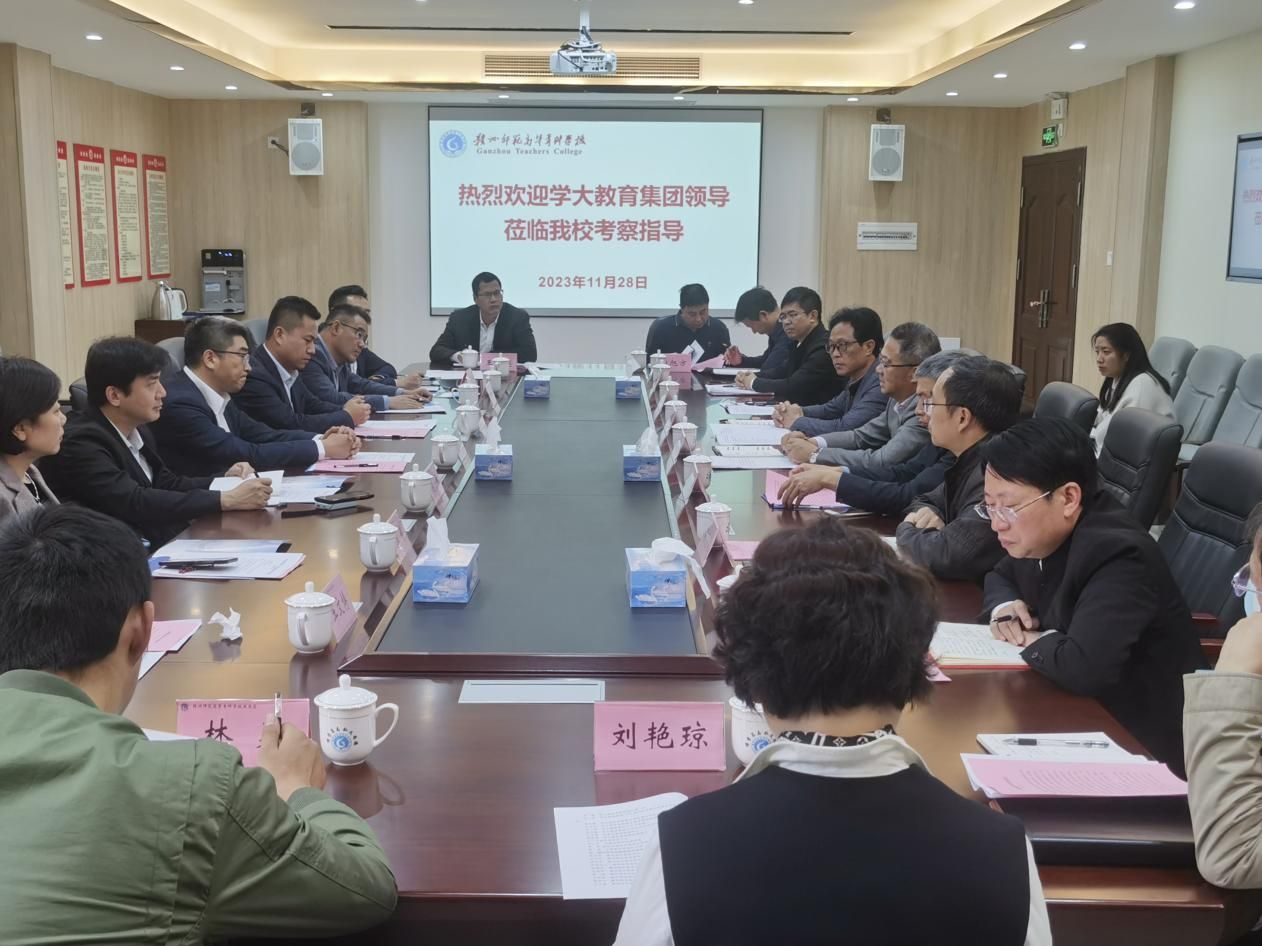 学大教育集团CEO金鑫一行抵达赣州后,在赣州市教育局四级调研员杨人中的全程陪同下,首站前往拟合作项目地块考察了建设规划及施工进度。随后,金鑫一行先后前往赣州应用科技职业学院、赣州理工职业技术学校和赣州师范高等专科学校参观调研,并与赣州师范高等专科学校相关负责领导进行了座谈交流。