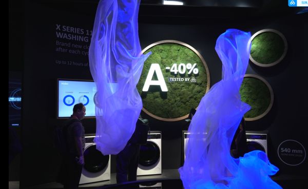 在绿色发展上,海尔智家将可持续发展理念融入产品全生命周期。在研发端,依托全球10大研发中心,海尔智家致力于前沿节能技术的研发和应用,不断提升全系产品能效。如国内搭载精华洗功能的洗衣机,用水量比传统滚简洗衣机节省38%;海外海尔X11洗衣机达到了A-40%,引领了欧洲最高节能标准。