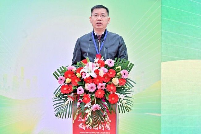 随后,四川杉宝生物科技有限公司董事长王强上台致辞。他首先对关注支持公司项目推进的各级领导、相关单位、社会各界表达了诚挚的谢意,接着又向到场嘉宾详细介绍了四川杉宝生物科技有限公司的发展历程、取得成果以及未来规划。