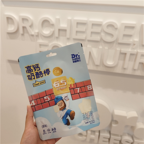 近期,奶酪博士对奶酪棒进行了全新升级,推出了能够常温携带的高钙奶酪棒。这款产品的钙含量高达700mg/100g,约为同量牛奶钙含量的6.5倍,3倍钙钠比,低盐高钙,为孩子补充足够的“钙动力”。同时,干酪添加量高达55%,并添加了≥14的生牛乳,营养不稀释,奶味更浓郁,口感更软糯,既营养又美味。洞察到市场对常温奶酪棒的需求,奶酪博士还对奶酪棒外壳进行了全新升级,增加了阻光层和多层密封保存,使产品更适应常温环境,可在户外运动、旅游时随身携带。
