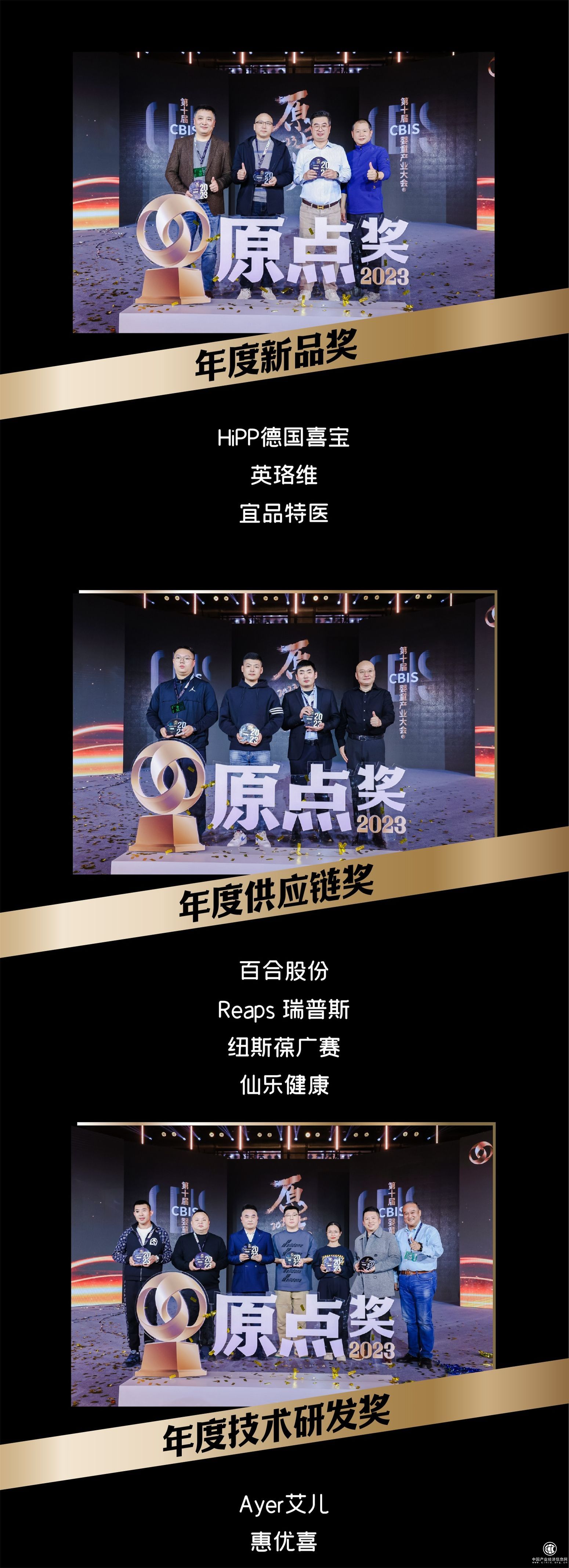 2023年12月12日-13日-14日,由中童传媒主办的第十届CBIS婴童产业大会在北京中国大饭店盛大举行。本届大会上,“原点之夜”重磅揭晓了2023婴童产业原点奖。
