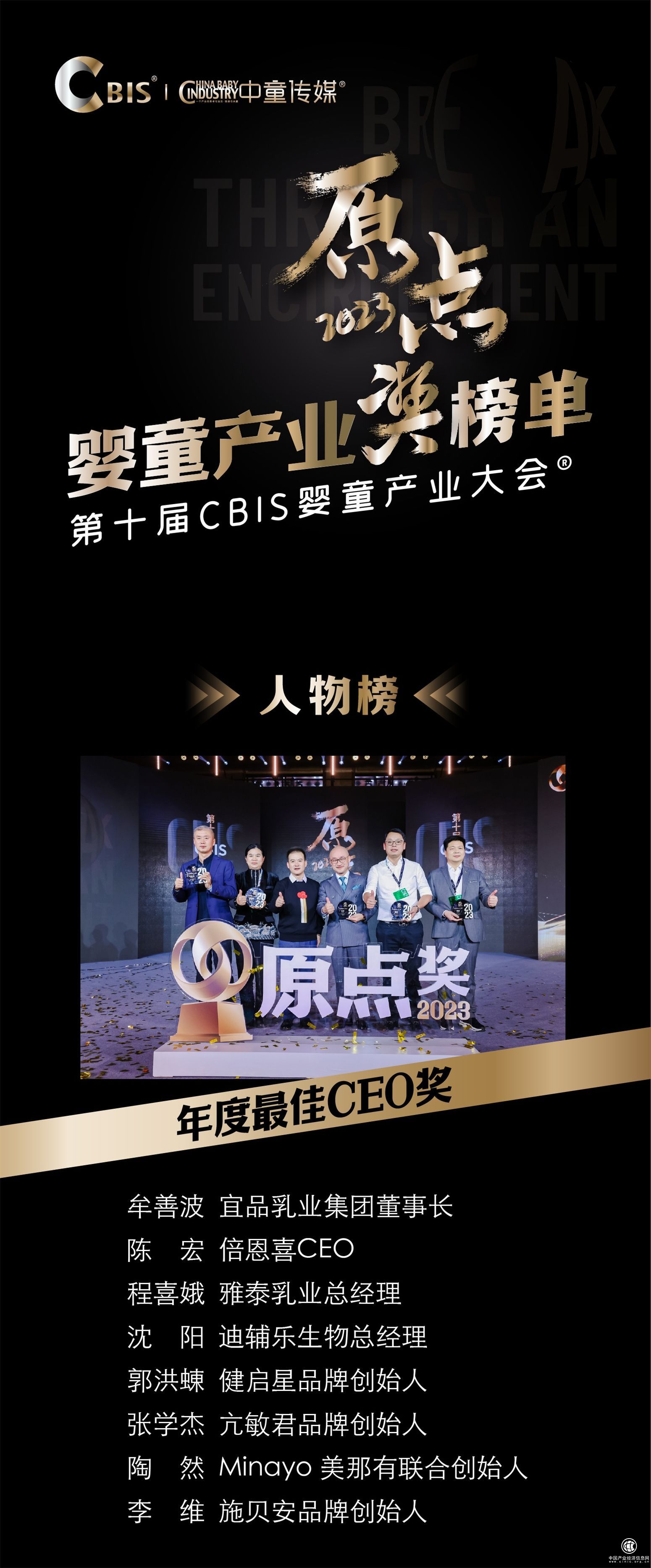 宜品乳业集团董事长牟善波、倍恩喜CEO陈宏、雅泰乳业总经理程喜娥、迪辅乐生物总经理沈阳、健启星品牌创始人郭洪蝀、亢敏君品牌创始人张学杰、Minayo美那有联合创始人陶然、施贝安品牌创始人李维